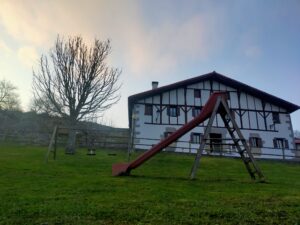El alojamiento cuenta con un choco de barbacoa con mesas cerrada y un jardín con tobogán y columpios para los más pequeños.